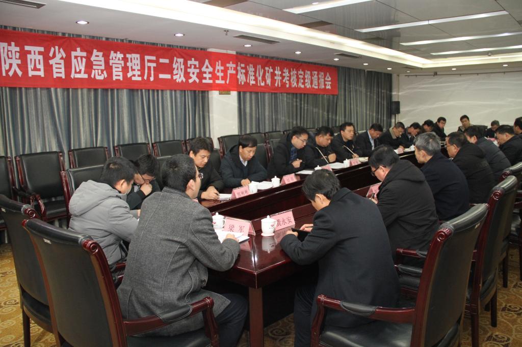 12月20日上午,陜西省應急管理廳二級安全生產(chǎn)標準化礦井考核定級通報會在煤業(yè)賓館召開了。陜西省應急管理廳二級調(diào)研員劉勝利,銅川市能源局有關(guān)負責同志和驗收組相關(guān)領(lǐng)導,公司副總經(jīng)理邢彥民,公司相關(guān)部門負責人、柴家溝井有關(guān)領(lǐng)導參加驗收通報會。驗收組在會上宣布柴家溝井各專業(yè)達到考核要求,通過二級考核定級驗收。