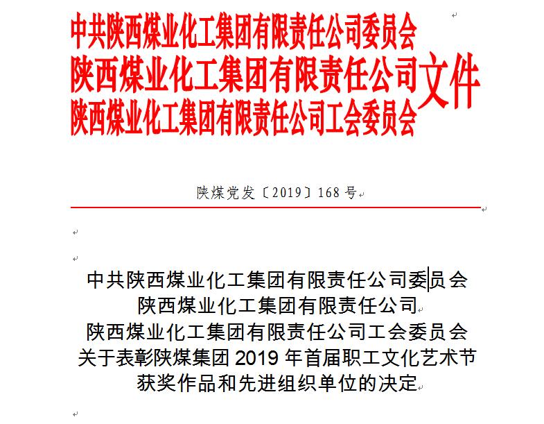 為深入貫徹落實(shí)習(xí)近平總書(shū)記關(guān)于進(jìn)一步提高文化自覺(jué)、增強(qiáng)文化自信、實(shí)現(xiàn)文化自強(qiáng)的重要講話精神,努力打造健康文明、昂揚(yáng)向上、全員參與的職工文化,豐富職工精神生活,激發(fā)職工的勞動(dòng)熱情和創(chuàng)造活力,團(tuán)結(jié)廣大職工凝心聚力為陜煤集團(tuán)追趕超越高質(zhì)量發(fā)展?fàn)幾餍仑暙I(xiàn),以優(yōu)異成績(jī)向新中國(guó)成立70周年和陜煤集團(tuán)成立15周年獻(xiàn)禮。陜煤集團(tuán)黨委從2019年3至10月組織開(kāi)展了集團(tuán)首屆職工文化藝術(shù)節(jié)系列活動(dòng)。近期職工文化藝術(shù)節(jié)相關(guān)項(xiàng)目評(píng)獎(jiǎng)結(jié)果揭曉,公司多個(gè)節(jié)目作品獲獎(jiǎng),并榮獲陜煤集團(tuán)2019年首屆職工文化藝術(shù)節(jié)“先進(jìn)組織單位”殊榮。