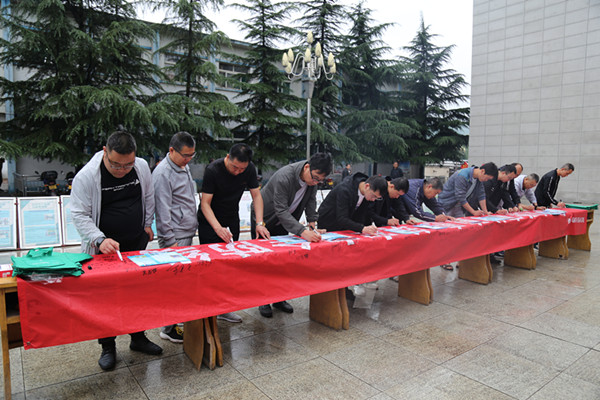 活動中,該公司(礦)黨政帶領全體干部職工進行安全宣誓,許下了爭做安全先鋒,努力實現安全“零”目標的誓言,并在題有“消除事故隱患、筑牢安全防線”的簽名牌板上鄭重的簽上了自己的名字。隨后,工作人員采取發(fā)放宣傳資料、免費咨詢、現場解答等形式,向大家集中宣傳了工程建設、防火防盜、安全用電、應急救援、逃生自救等方面的知識。干部職工認真觀看了展出的以安全生產法律法規(guī)為內容的展板,為企業(yè)轉型發(fā)展營造良好的安全環(huán)境。(王軍)