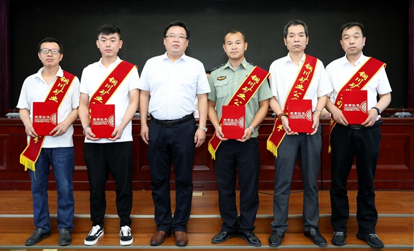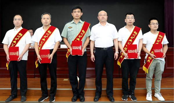 ▲公司領(lǐng)導(dǎo)與獲得“技術(shù)標(biāo)兵”榮譽(yù)稱號(hào)選手合影