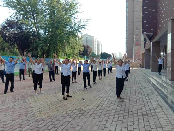 “推廣第九套廣播體操以來(lái),干部職工自覺(jué)做操已成為習(xí)慣,特別是年輕同志在不敢不少節(jié)制、不管時(shí)間的晚收集、看微信、刷朋友圈了。一些單位在老區(qū)、家住在新區(qū)的同志早上出發(fā)時(shí)間提前了,唯恐來(lái)遲趕不上出操,不能按時(shí)考勤,受到批評(píng)教育或處罰。做廣播體操看起來(lái)是小事,但反應(yīng)著單位和干部職工的精神面貌,好好做操,身體得到鍛煉,倦怠松懈遠(yuǎn)離身邊,工作質(zhì)量和效率也會(huì)大大提升”。筆者在華遠(yuǎn)項(xiàng)目部采訪時(shí),不少干部職工說(shuō)起推廣第九套廣播體操帶領(lǐng)的變化滿是高興和喜悅。