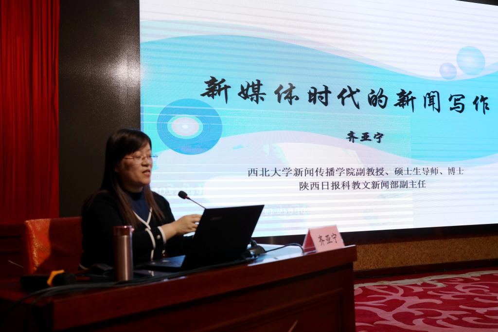 三秦都市報(bào)要聞部主任趙明以《會(huì)議報(bào)道和活動(dòng)報(bào)道的寫作方法與技巧》為題,講授了時(shí)政新聞報(bào)道的組織策劃、方法技巧,并與大家分享了實(shí)戰(zhàn)經(jīng)驗(yàn),讓大家深受啟發(fā)。