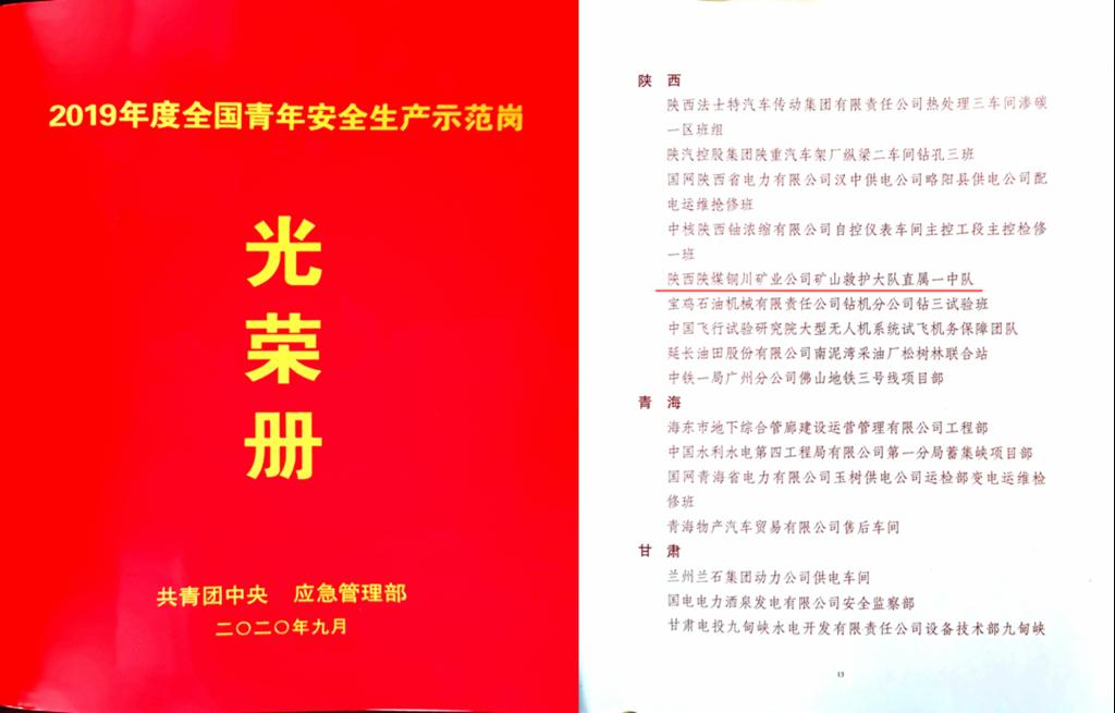 近日,公司礦山救護大隊直屬一中隊被團中央聯(lián)合應(yīng)急管理部授予“全國青年安全生產(chǎn)示范崗”稱號,是陜煤集團唯一獲此殊榮的青年集體。