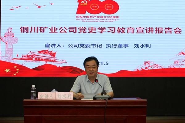 為進一步推動公司黨史學(xué)習(xí)教育走深走實,5月19日,公司在機關(guān)五樓會議室舉辦了公司首場黨史學(xué)習(xí)教育宣講報告會。黨史學(xué)習(xí)教育銅川礦業(yè)公司宣講團成員、公司黨委書記、執(zhí)行董事劉水利為黨員干部作了一場生動精彩的黨史學(xué)習(xí)教育宣講報告。