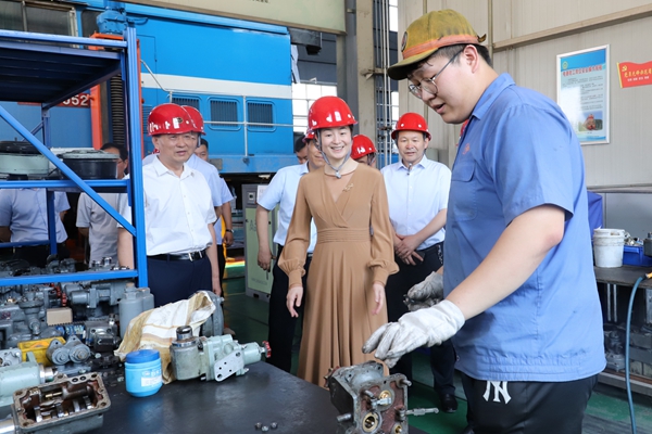 陳小艷一行深入機(jī)車檢修現(xiàn)場(chǎng),聽取了公司圍繞機(jī)車檢修、技術(shù)裝備、產(chǎn)品研發(fā)、人才培育和未來(lái)發(fā)展規(guī)劃等方面工作的匯報(bào)。就工作細(xì)節(jié)與隨行人員進(jìn)行了深入交流。