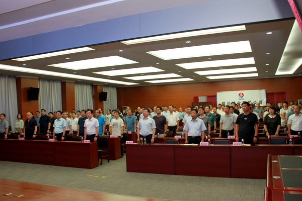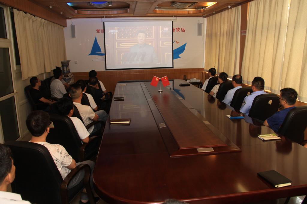 在公司機關(guān)五樓會議室,公司黨委書記、執(zhí)行董事劉水利,總經(jīng)理路根奎,黨委副書記、工會主席許江濤及公司各副總,機關(guān)各黨支部黨員干部早早來到會場集中收看了慶?;顒邮r,共同見證這一激動人心的歷史性時刻。當升旗儀式開始時,與會所有人員起立,高唱《義勇軍進行曲》,當習近平總書記做重要講話時,大家認真仔細聆聽,反響強烈,并不時以掌聲激動的表達了對黨的無比崇敬,對黨員身份的自豪和認同。