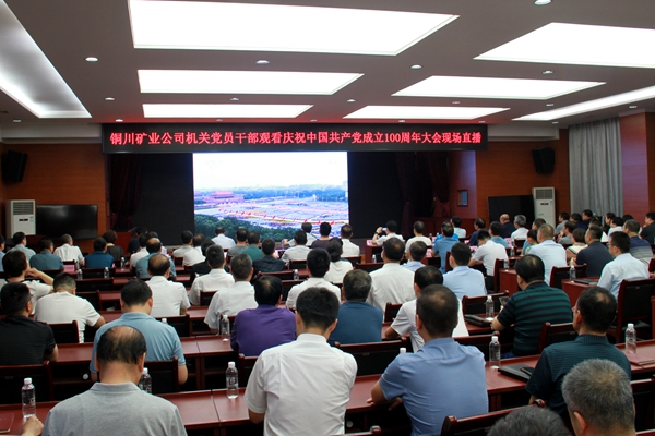 在煤礦管理公司,機關(guān)全體黨員在會議室觀看了慶祝中國共產(chǎn)黨成立100周年大會直播盛況。