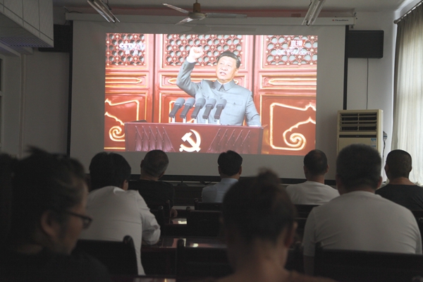 在欣榮配售電公司,廣大黨員干部集中觀看了建黨100周年慶祝大會直播,共同聆聽習近平總書記大會重要講話。