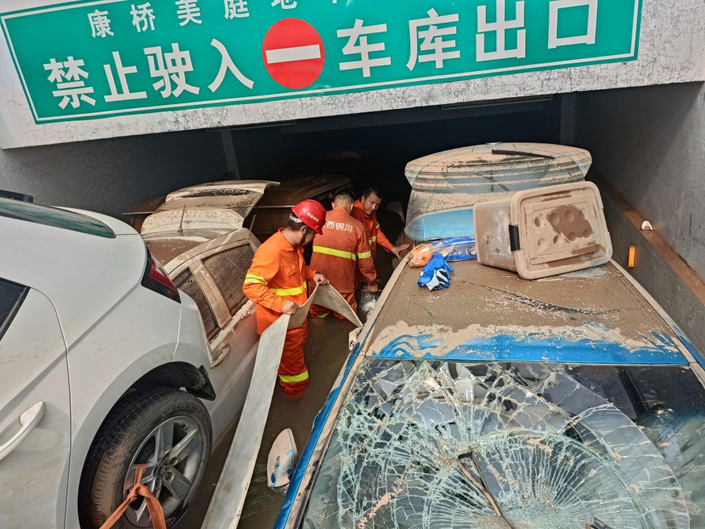 該小區(qū)地下超市作業(yè)環(huán)境相對(duì)簡(jiǎn)單,排水、移泵、接管有條不紊不間斷進(jìn)行,但對(duì)該地下車庫(kù)進(jìn)行排水作業(yè)時(shí),由于災(zāi)情發(fā)生時(shí)居民沒有正確判斷險(xiǎn)情,許多車輛堵在車庫(kù)出入口,所幸人員全部安全撤離。面對(duì)一個(gè)個(gè)一噸多重的車輛,救援隊(duì)在抽水移泵期間,還要?jiǎng)佑猛宪噷⑴菟囕v一一拖出,才能進(jìn)行下一步作業(yè)。在拖車移泵作業(yè)中,為了加快救援進(jìn)度,所有指戰(zhàn)員不怕臟、不怕累,全部跳到水中,將一個(gè)個(gè)車輛拖出,10米、20米,隨著排水管路的不斷延長(zhǎng),水位一步步在下降。截止下午5點(diǎn),排水作業(yè)全部完成,所有人員都舒了一口氣。