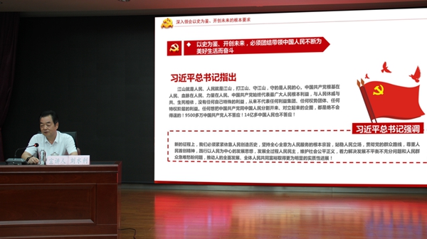 公司黨史學(xué)習(xí)教育領(lǐng)導(dǎo)小組組長、黨委書記、執(zhí)行董事劉水利作專題宣講。公司黨委副書記、總經(jīng)理路根奎主持宣講報告會。公司領(lǐng)導(dǎo)班子成員,各副總,機(jī)關(guān)各部門負(fù)責(zé)人,各單位的黨政主要領(lǐng)導(dǎo)聆聽了宣講。