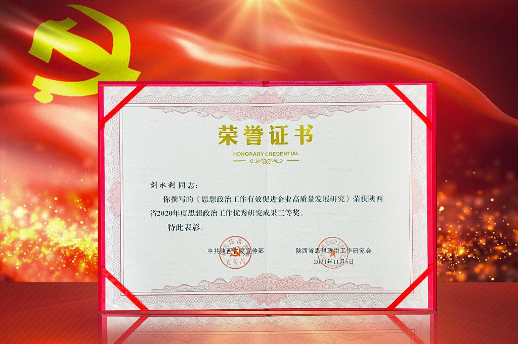 近日,陜西省委宣傳部下發(fā)了《關(guān)于陜西省2020年度思想政治工作優(yōu)秀研究成果的通報》,對獲得2020年度全省思想政治工作優(yōu)秀研究成果的論文和作者進行了通報表揚。公司黨委書記、執(zhí)行董事劉水利撰寫的論文《思想政治工作有效促進企業(yè)高質(zhì)量發(fā)展研究》一文,被陜西省委宣傳部、陜西省思想政治工作研究會評為優(yōu)秀研究成果三等獎。此前該文還在陜西省煤炭工業(yè)協(xié)會和陜煤集團主辦的陜西煤炭行業(yè)第十七次思想政治工作研討會上榮獲二等獎。