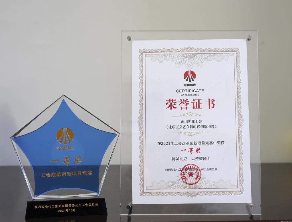近日,陜煤集團工會召開了2021年改革創(chuàng)新項目競賽、“智慧工會”建設現(xiàn)場會,對集團公司所屬單位工會改革創(chuàng)新項目進行表彰。會上,銅川礦區(qū)工會《讓職工文藝在新時代創(chuàng)新增彩》創(chuàng)新項目被評為競賽一等獎。