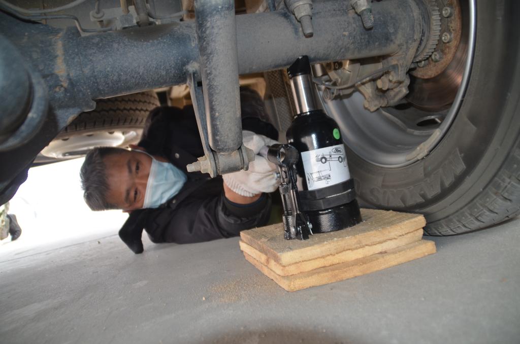 輪胎拆裝和輪胎裝防滑鏈比賽項(xiàng)目中,各個(gè)選手動(dòng)作嫻熟,身手敏捷,行動(dòng)迅速,精準(zhǔn)地將車輛停在墊木上,以最快的速度完成防滑鏈的安裝、加固、拆卸的動(dòng)作。拆裝輪胎時(shí),選手快速?gòu)能嚿先〕龉ぞ?,整個(gè)拆卸動(dòng)作一氣呵成。