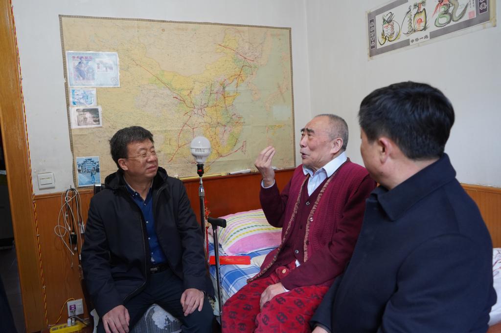 在華遠(yuǎn)項(xiàng)目部看望慰問(wèn)89歲的老黨員員佰龍時(shí),路根奎親切地和老人拉起了家常,詳細(xì)詢問(wèn)了他的生活和身體情況,得知員佰龍長(zhǎng)期在礦區(qū)醫(yī)療戰(zhàn)線工作,以醫(yī)務(wù)人員的擔(dān)當(dāng)作為為煤礦生產(chǎn)建設(shè)積極服務(wù),路根奎說(shuō),你們老一輩為礦務(wù)局的發(fā)展付出了心血智慧,老同志的奉獻(xiàn)精神值得我們永遠(yuǎn)傳承發(fā)揚(yáng),新年來(lái)臨向您表達(dá)崇高的敬意和新春的祝福,祝您和家人身體健康、生活幸福。他同時(shí)囑咐隨行的公司有關(guān)部室和單位負(fù)責(zé)人,要落實(shí)好相關(guān)政策,多關(guān)心老同志的生活,讓他們切實(shí)感受到黨組織的關(guān)懷和企業(yè)的溫暖。