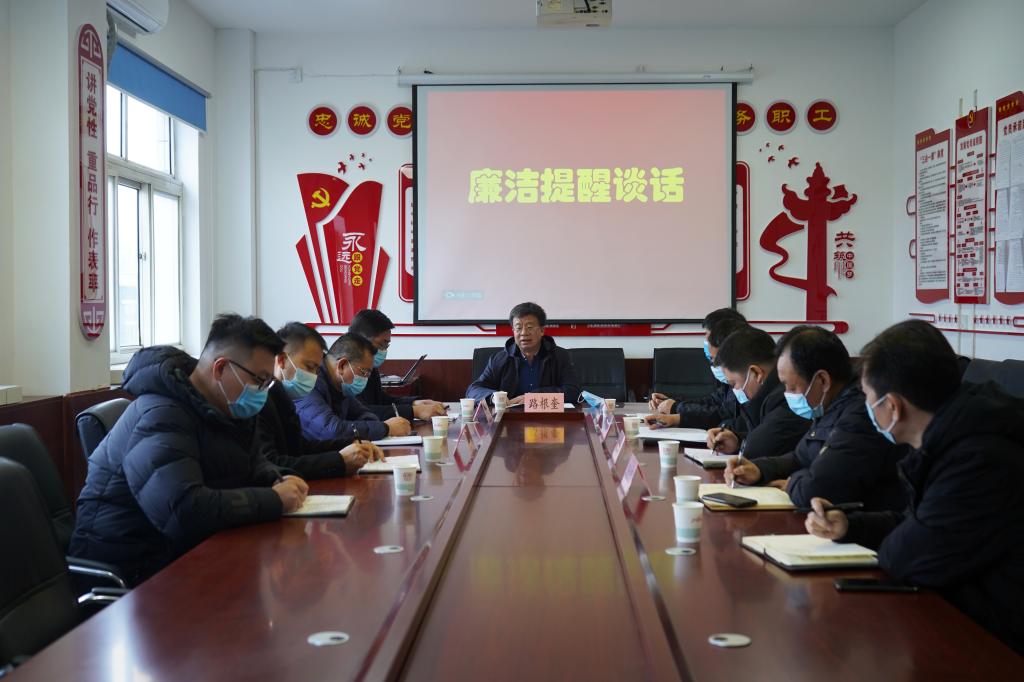 針對(duì)加強(qiáng)節(jié)日正風(fēng)肅紀(jì)工作,當(dāng)日上午,路根奎還對(duì)分包分管的公司相關(guān)部室領(lǐng)導(dǎo)干部進(jìn)行了集體廉潔提醒談話,并對(duì)抓好當(dāng)前安全生產(chǎn)、疫情防控和春節(jié)期間的黨風(fēng)廉政建設(shè)工作提出了要求。