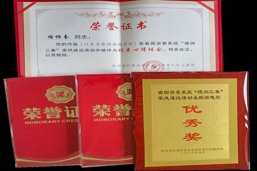 近日,從陜煤集團(tuán)傳來喜訊,公司黨委副書記、總經(jīng)理路根奎撰寫的《以史為鑒讀出好家風(fēng)》被評為省國資委系統(tǒng)“德潤三秦”家風(fēng)建設(shè)優(yōu)秀心得體會,公司職工馮楠撰寫的《春風(fēng)化雨 潤物無聲》被評為家規(guī)“優(yōu)秀獎(jiǎng)”,馬根元制作的手工作品《廉心壺》被評為廉政手工“優(yōu)秀獎(jiǎng)”,下石節(jié)礦拍攝的視頻《追夢人》評為家風(fēng)主題微電影“優(yōu)秀獎(jiǎng)”。