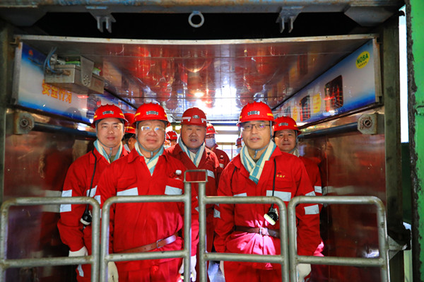 隨后,趙文革一行深入井下,實地查看井下1417智能化綜放工作面、井下智能集控中心、網(wǎng)絡架構建設、5G項目建設、瓦斯抽采效果動態(tài)分元評價系統(tǒng)、頂板離層監(jiān)測系統(tǒng)、自動排水系統(tǒng)等“一鍵化”“一屏知”信息流集控的“四化”建設成果,詳細詢問了高位鉆孔預抽技術、復雜地質(zhì)條件下巷道支護及智能開采技術、電子圍欄技術、物聯(lián)網(wǎng)信息傳輸技術等智能化技術應用情況,全面了解了礦井深化自主創(chuàng)新,將轉載機自動化行人直通裝置、高強度支護工藝、感應降塵、自動隔爆等技術創(chuàng)新成果成功應用到生產(chǎn)當中所取得的實際成效。在陜煤集團首套巖巷智能化快速掘進成套裝備應用生產(chǎn)現(xiàn)場,一行人實地了解復雜地質(zhì)條件下的智能快掘技術應用情況,就相關條件下的智能生產(chǎn)、安全管理交流經(jīng)驗做法。在10千伏變電所,實地查看了“無人值守、智能巡檢”工作推進情況,了解礦井建成4套巡檢機器人,打造區(qū)域巡檢鏈條的工作思路及成效。