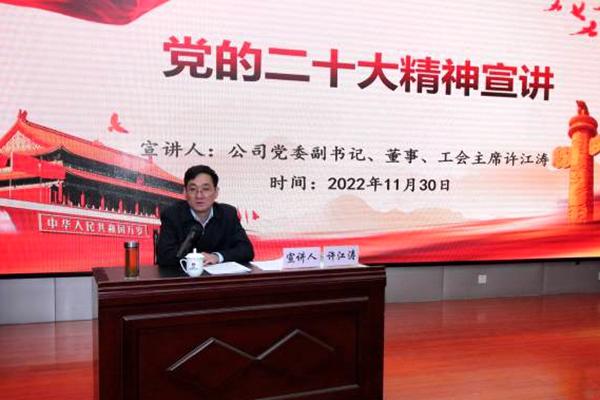 宣講中,公司領(lǐng)導(dǎo)從“黨的二十大的主題、主要成果,過去5年的工作和新時代10年的偉大變革,馬克思主義中國化時代化,中國式現(xiàn)代化,全面建設(shè)社會主義現(xiàn)代化國家的目標(biāo)任務(wù),堅持黨的全面領(lǐng)導(dǎo)和全面從嚴(yán)治黨,應(yīng)對風(fēng)險挑戰(zhàn)”等7個方面,對黨的二十大精神作了全面系統(tǒng)深入的宣講,并緊密結(jié)合黨的二十大精神和做好當(dāng)前各項工作,對持續(xù)加強(qiáng)安全生產(chǎn),推動企業(yè)發(fā)展,奮力實現(xiàn)年度目標(biāo)任務(wù),不斷開創(chuàng)各項工作發(fā)展新局面提出了要求。