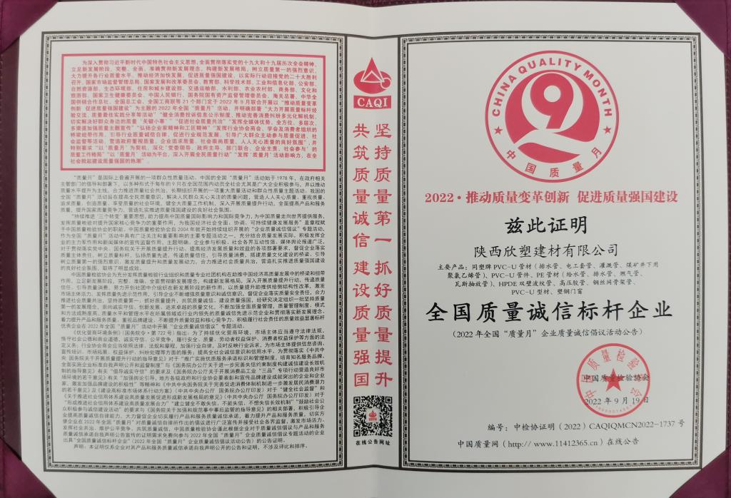 “硬質(zhì)量才能鍛造好品牌”。該公司把卓越績效、精益管理融入生產(chǎn)各個(gè)環(huán)節(jié),扎實(shí)開展QC活動(dòng)、“標(biāo)準(zhǔn)化+”“質(zhì)量衛(wèi)士”和“質(zhì)量先鋒”創(chuàng)建等系列質(zhì)量提升行動(dòng),抓好工藝優(yōu)化、配方試驗(yàn),并有獎(jiǎng)?wù)骷瘑T工對質(zhì)量管控、設(shè)備技改、提質(zhì)提效等方面的合理化建議,持續(xù)改進(jìn)產(chǎn)品質(zhì)量,PE鋼絲網(wǎng)骨架管、高壓膠管、HDPE波紋管、PE給水管、PVC排水管、塑鋼門窗等產(chǎn)品的關(guān)鍵指標(biāo)優(yōu)于國家標(biāo)準(zhǔn),處于行業(yè)先進(jìn)水平。同時(shí),以用戶需求為導(dǎo)向,技術(shù)創(chuàng)新為驅(qū)動(dòng),加大技術(shù)研發(fā)投入,推動(dòng)成果轉(zhuǎn)化運(yùn)用,獲得《一種便于法蘭盤定位的鋼絲網(wǎng)骨架管》《一種具有防止接頭斷裂的高壓膠管》等實(shí)用新型專利21項(xiàng),全面提升用戶滿意度。該公司以過硬的產(chǎn)品質(zhì)量和優(yōu)良的售后服務(wù),打造了“同塑”優(yōu)質(zhì)品牌。企業(yè)榮獲“銅川質(zhì)量獎(jiǎng)”“全國質(zhì)量誠信標(biāo)桿企業(yè)”“全國產(chǎn)品和服務(wù)質(zhì)量誠信示范企業(yè)”等榮譽(yù)。產(chǎn)品廣泛銷往河南、山西、榆林、延安、寶雞、西安、渭南等多個(gè)省市地區(qū)。2022年,該公司營業(yè)收入較上年增幅達(dá)到了18.4%,再創(chuàng)歷史新高,助力企業(yè)超額完成了年度經(jīng)營目標(biāo)任務(wù)。