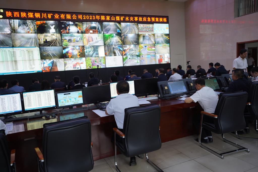 在31日舉辦的水災(zāi)事故應(yīng)急演練活動現(xiàn)場,國家礦山安全監(jiān)察局陜西局救援指揮中心主任鐘楠,陜西局監(jiān)察執(zhí)法三處二級調(diào)研員孫即亮,銅川市能源局四級調(diào)研員、總工程師李軍發(fā)等領(lǐng)導在陳家山礦調(diào)度指揮中心對演練進行了現(xiàn)場觀摩指導。陜西局有關(guān)領(lǐng)導在西安辦公樓會議室通過生產(chǎn)指揮監(jiān)控平臺觀看了演練。公司領(lǐng)導和公司機關(guān)有關(guān)部門負責人參加了應(yīng)急演練,彬長礦業(yè)文家坡礦、公司玉華礦、下石節(jié)礦、柴家溝井、冶坪分公司有關(guān)人員現(xiàn)場觀摩了演練。