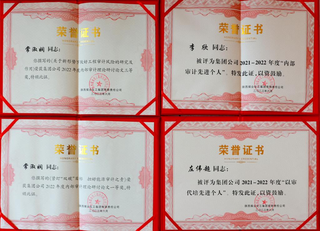 6月8日,陜煤集團(tuán)召開2023年審計(jì)工作會(huì),總結(jié)回顧2021-2022年度集團(tuán)內(nèi)部審計(jì)工作,部署下一階段審計(jì)工作,同時(shí)對(duì)2021-2022年度集團(tuán)內(nèi)部審計(jì)先進(jìn)集體、先進(jìn)個(gè)人進(jìn)行了表彰。會(huì)上,公司被集團(tuán)評(píng)為“內(nèi)部審計(jì)工作先進(jìn)集體”,同時(shí)榮獲“規(guī)范經(jīng)營投資、開展研究型審計(jì)、推進(jìn)以審代培”三個(gè)專項(xiàng)工作先進(jìn)單位榮譽(yù),并有3人被評(píng)為先進(jìn)個(gè)人,6篇論文獲獎(jiǎng)。
