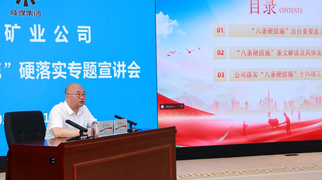 為認(rèn)真貫徹落實(shí)國(guó)家礦山安全監(jiān)察局關(guān)于“八條硬措施”硬落實(shí)相關(guān)要求,深刻把握“八條硬措施”精神實(shí)質(zhì)和科學(xué)內(nèi)涵,9月10日,公司在信息調(diào)度中心五樓會(huì)議室舉辦“八條硬措施”硬落實(shí)主題宣講會(huì)。公司黨委書(shū)記、董事長(zhǎng)路根奎主持會(huì)議,公司黨委副書(shū)記、董事、總經(jīng)理雷鐵山作了宣講。