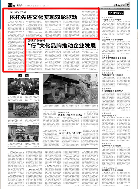 該公司確立了實(shí)現(xiàn)安全與穩(wěn)定“雙零”目標(biāo)、打造“三型六化”企業(yè)品牌、讓職工快樂(lè)工作、體面生活“的三大治企理念”。編寫了公司企業(yè)文化手冊(cè)、安全文化手冊(cè)、廉潔文化手冊(cè),編寫了司歌,為建塑銅煤特色企業(yè)文化確立了理念文化體系。