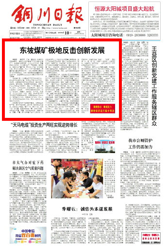 在煤炭市場(chǎng)持續(xù)寒冬,煤炭企業(yè)經(jīng)濟(jì)普遍下行壓力增大的情況下,東坡煤礦堅(jiān)持創(chuàng)新,以企業(yè)文化引領(lǐng)、質(zhì)量標(biāo)準(zhǔn)化為抓手,大力增加生產(chǎn),節(jié)能降耗,降低成本,做到礦井產(chǎn)量不降,職工收入不減,礦區(qū)面貌大變,職工隊(duì)伍穩(wěn)定,并從一個(gè)井下條件復(fù)雜、質(zhì)量標(biāo)準(zhǔn)化建設(shè)滯后的礦井,一躍從陜西煤化集團(tuán)30多個(gè)礦井脫穎而出,今年一舉獲得省級(jí)質(zhì)量標(biāo)準(zhǔn)化先進(jìn)礦井、全國(guó)煤炭工業(yè)企業(yè)文化建設(shè)示范礦井多項(xiàng)榮譽(yù)。