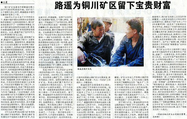 ★5月18日“中國(guó)煤炭報(bào)”八版刊發(fā)《路遙為銅川礦區(qū)留下寶貴財(cái)富》(作者:王蓬)