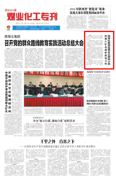 調(diào)研期間,段小昌一行在銅川礦業(yè)公司相關(guān)部門負(fù)責(zé)人陪同下,深入該公司柴家溝礦對(duì)該礦生產(chǎn)經(jīng)營(yíng)情況進(jìn)行了調(diào)研。