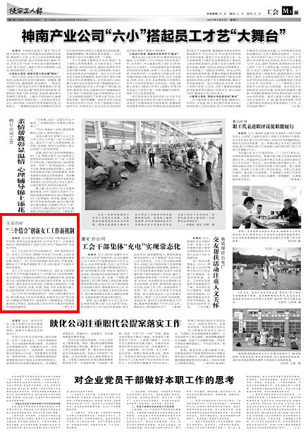 近年來,銅川礦業(yè)王石凹礦不斷創(chuàng)新女工工作機(jī)制,堅(jiān)持與企業(yè)發(fā)展實(shí)際、礦井安全生產(chǎn)、自身建設(shè)相結(jié)合,較好地發(fā)揮了女職工在礦井生產(chǎn)建設(shè)中的“半邊天”作用。