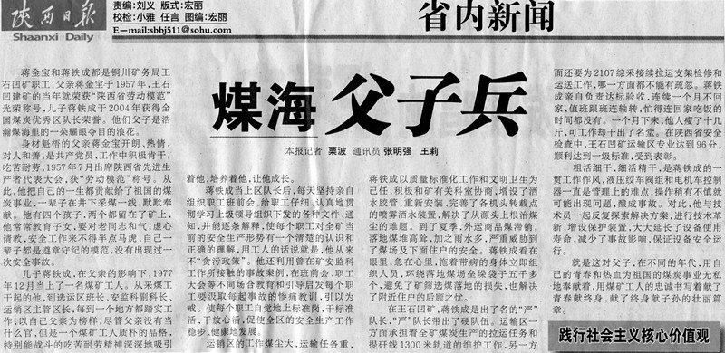 ● 7月16日“陜西日報(bào)”第五版刊發(fā)《煤海父子兵》(作者:栗波 張明強(qiáng) 王莉)