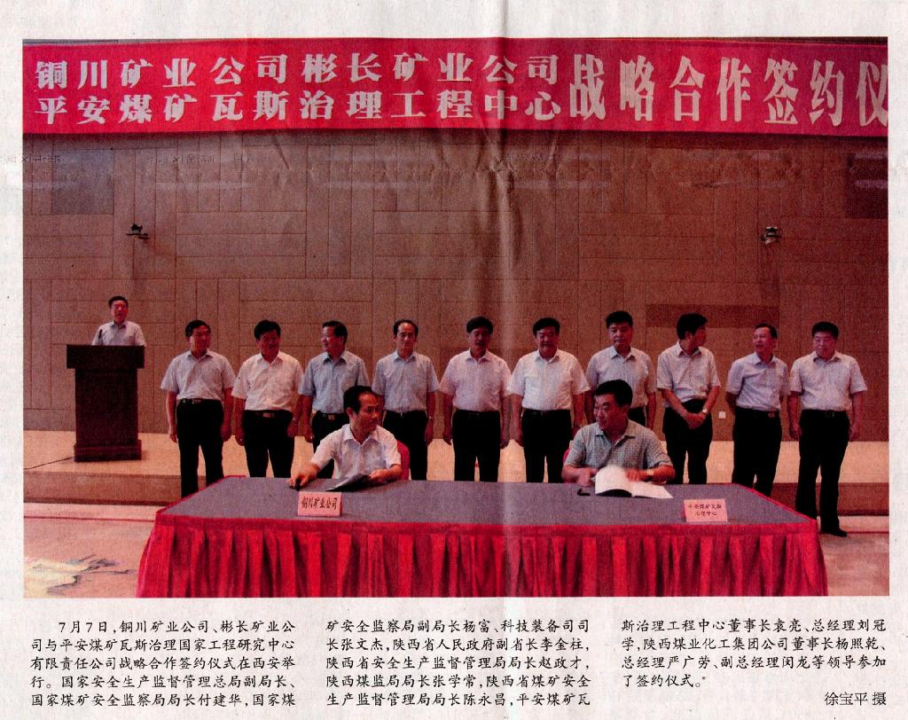 ★ 7月15日“陜西工人報(bào)”刊發(fā)《銅川礦業(yè)公司、彬長礦業(yè)公司與平安煤礦瓦斯治理國家工程研究中心簽署戰(zhàn)略合作協(xié)議》
