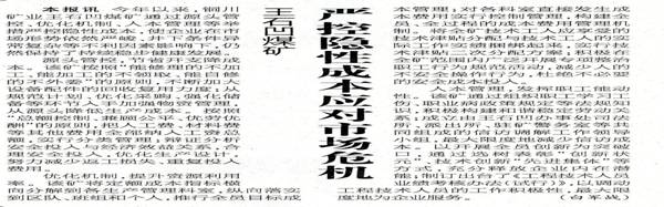 ★ 4月1日“陜西工人報”刊發(fā)《王石凹煤礦實行責任成本管理挖潛增效》(作者:白軍戰(zhàn))