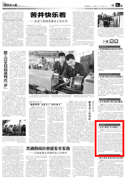 陜西工人報 2014年6月4日 煤業(yè)三版