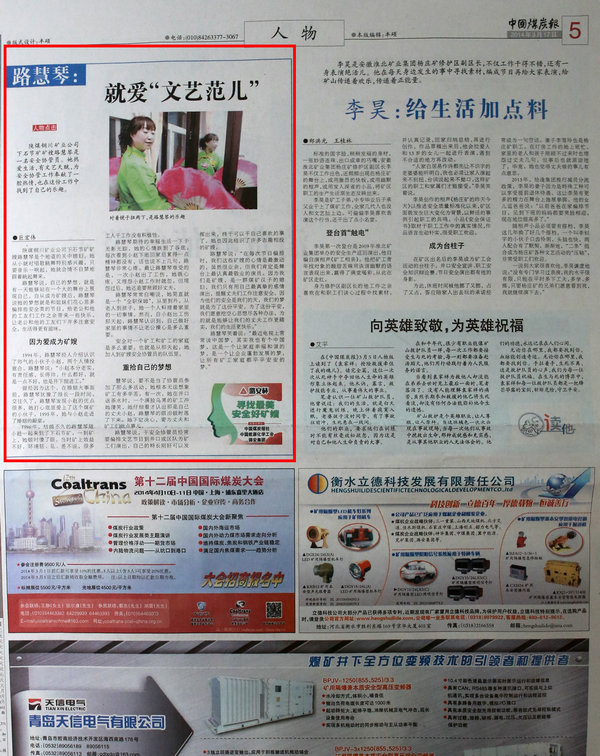 路慧琴笑著說:“最近電視上常常談中國夢,其實我也有個中國夢,我這是一個讓家庭幸福和諧的夢,是一個讓企業(yè)蓬勃發(fā)展的夢,是一個讓所有礦工家庭平平安安的夢。