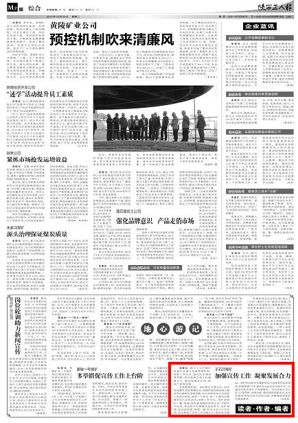銅川王石凹煤礦黨委先后通過完善管理機(jī)制、創(chuàng)新工作方式、強(qiáng)化隊伍建設(shè)等舉措,切實發(fā)揮宣傳工作凝聚人心、推動發(fā)展的作用,收到了良好成效。