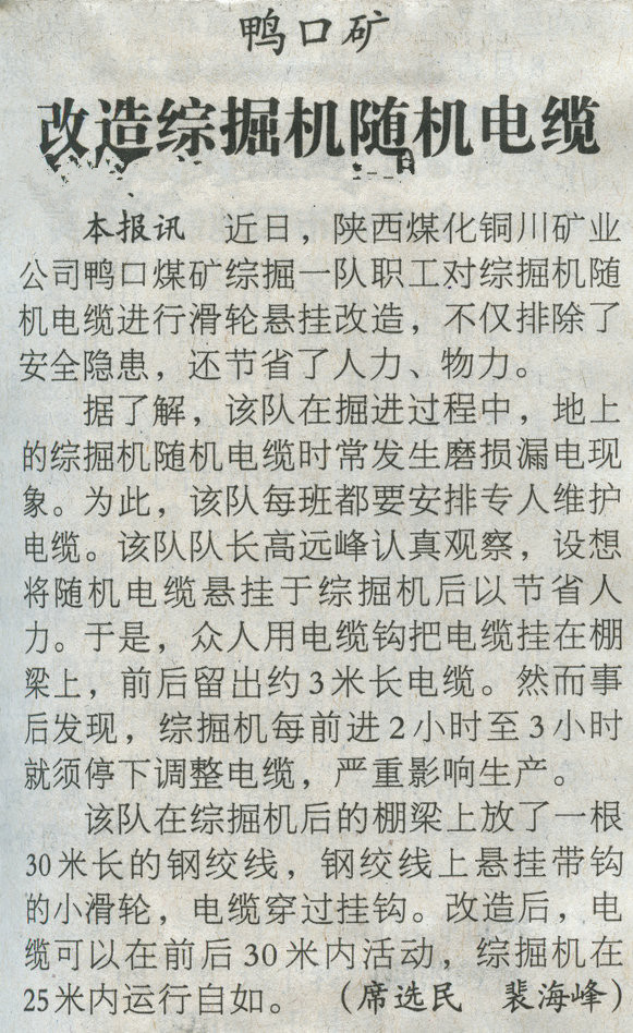 下一條:中國(guó)煤炭報(bào):銅川礦業(yè)公司王石凹礦頌揚(yáng)凡人善舉 激發(fā)道德自覺