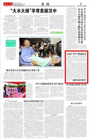 陜西日?qǐng)?bào) 2013年9月22日 第二版