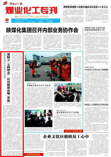 楊照乾結(jié)合各單位實(shí)際提出要求,韓城礦業(yè)公司要調(diào)整產(chǎn)品結(jié)構(gòu),加快礦井升級(jí)改造,提高11#煤的開(kāi)采速度,加強(qiáng)每個(gè)過(guò)程、每個(gè)環(huán)節(jié)、每個(gè)崗位的管理,不斷提升市場(chǎng)競(jìng)爭(zhēng)力;澄合礦業(yè)公司要積極走煤電聯(lián)營(yíng)道路,在與其他電力企業(yè)積極合作的同時(shí),建設(shè)自己的電廠,使新區(qū)產(chǎn)能實(shí)現(xiàn)合理釋放;蒲白礦業(yè)公司要深刻分析自身存在的優(yōu)勢(shì)和不足,認(rèn)真研究今后的發(fā)展方向和發(fā)展方式,保持健康穩(wěn)步的發(fā)展態(tài)勢(shì);銅川礦業(yè)公司在市場(chǎng)競(jìng)爭(zhēng)中要與相關(guān)企業(yè)加強(qiáng)合作,充分考慮東區(qū)礦和北區(qū)礦各自發(fā)展能力,做好轉(zhuǎn)體制、調(diào)機(jī)制工作,提升洗精煤產(chǎn)量。