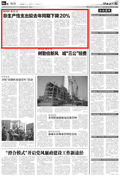 本報訊3月下旬,筆者到銅川礦業(yè)公司基層檢查了解史志編纂工作時,所到礦廠等15個單位,家家就餐不喝酒,個個招待所(賓館)冷冷清清,服務員說:“來了領導都吃工作餐,多半年了一直是這樣?!钡V廠財務科和主管經營的礦領導告訴筆者:“現在招待來賓吃便飯已成習慣,過緊日子就要有多項措施嘛?!睋私?,今年前三個月基層15個礦廠的非生產性支出均比去年同期下降20%。