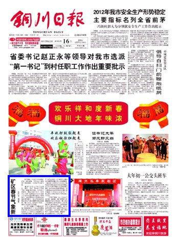 銅川日?qǐng)?bào) 2013年2月16日 頭版