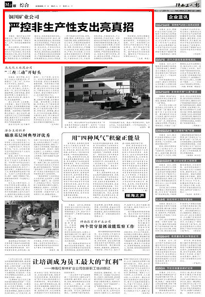 本報訊銅川礦業(yè)公司牢固樹立過“緊日子”管理思想,深層次、常態(tài)化推進(jìn)“增收節(jié)支”工作,保持企業(yè)健康持續(xù)發(fā)展。