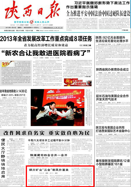 陜西日報 2013年元月8日 頭版