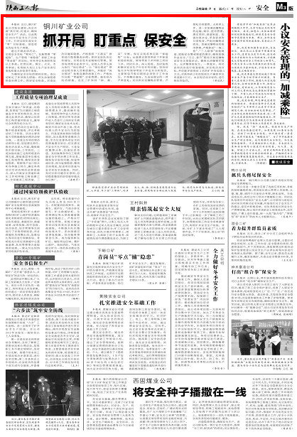 本報(bào)訊近日,銅川礦業(yè)公司發(fā)出通知,決定開展“抓開局、盯重點(diǎn)、確保安全生產(chǎn)”活動(dòng),以此抓好2013年安全生產(chǎn)開局工作,打好實(shí)現(xiàn)年度安全“零”目標(biāo)基礎(chǔ),創(chuàng)造更長的安全生產(chǎn)周期。