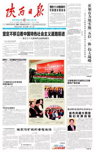 陜西日報 2012年11月13日 頭版