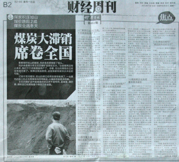 “銅川出現(xiàn)的這種現(xiàn)象,可以說僅僅只是全國煤炭市場(chǎng)的冰山一角而已?!敝袊禾窟\(yùn)銷協(xié)會(huì)市場(chǎng)觀察員、煤炭專家李朝林這樣說,“不僅僅是銅川,全國的煤礦都出現(xiàn)了這樣的狀況。山西、內(nèi)蒙古、河南、山東等煤炭大省現(xiàn)在挖出的煤大面積囤積,不少企業(yè)面臨停產(chǎn),因?yàn)椴煌.a(chǎn),挖出的煤沒有地方存放?!?/p>