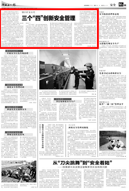 安全始終是銅川礦業(yè)公司各級黨政領(lǐng)導(dǎo)諸多工作中的重中之重,2006年他們就在全國首家提出了安全上實(shí)現(xiàn)“零”的奮斗目標(biāo)。六年來,礦業(yè)公司的安全生產(chǎn)持續(xù)好轉(zhuǎn),尤其是去年產(chǎn)煤1160萬噸,原煤百萬噸死亡率 0.086,但是,未實(shí)現(xiàn)安全“零”死亡的奮斗目標(biāo)。今年以來,他們在繼承發(fā)揚(yáng)過去安全工作好做法的基礎(chǔ)上,結(jié)合自身實(shí)際,創(chuàng)新安全管理,在三個“四”上下大功夫,狠抓落實(shí)。