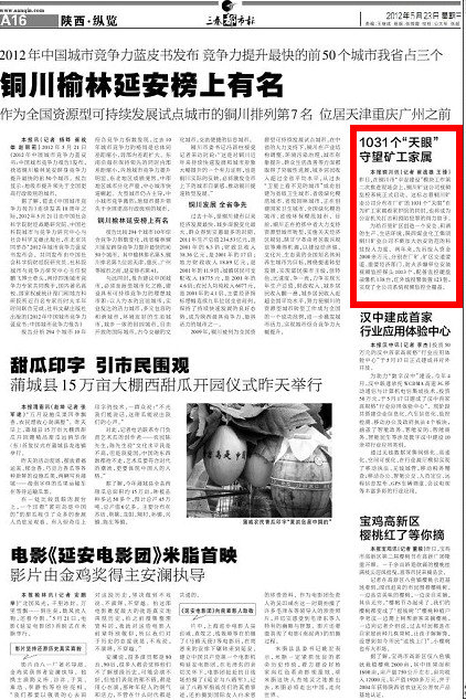 三秦都市報 2012年5月23日 A16版