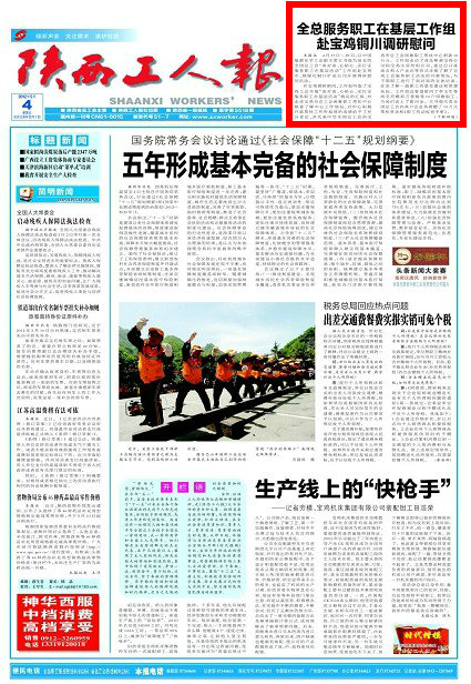 陜西工人報 2012年5月4日 一版